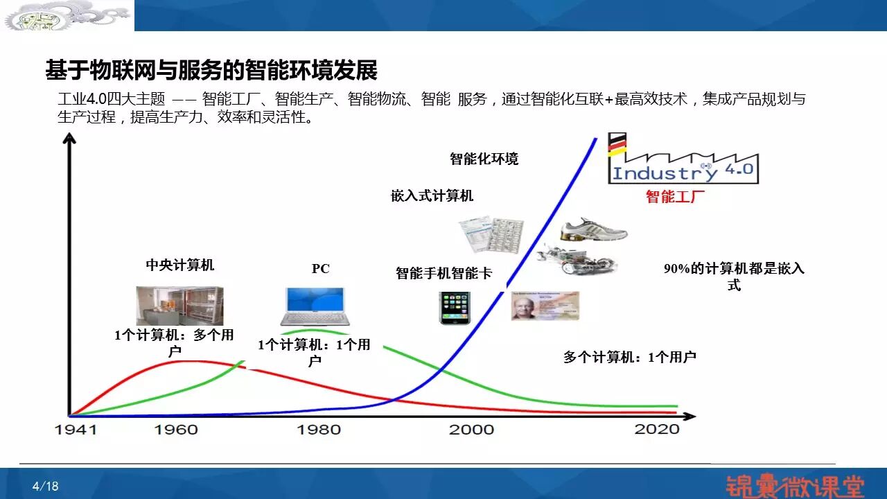 基于物联网与服务的智能环境发展,工业4.0四大主题 ―― 智能工厂、智能生产、智能物流、智能 服务,通过智能化互联+最高效技术,集成产品规划与生产过程,提高生产力、效率和灵活性。