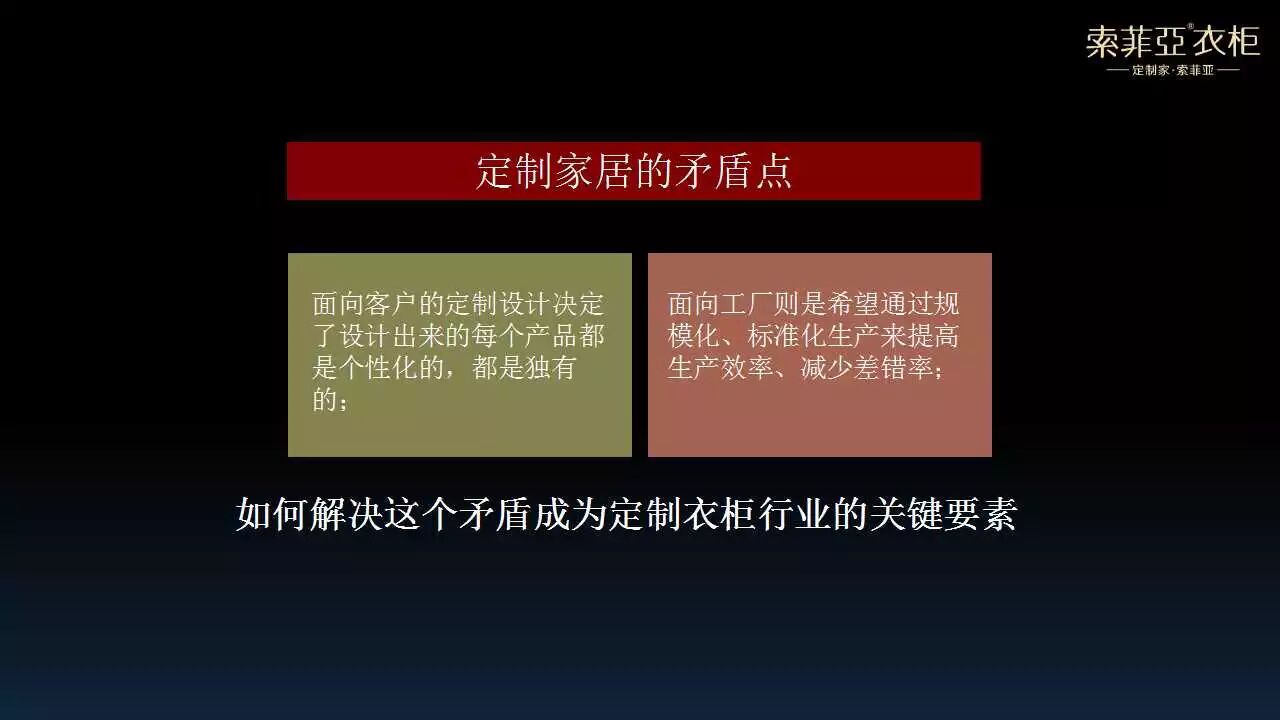 现在的信息技术和工业化水平,我们已经一步一步的做起来了。装修工也可以做衣柜,在家里面就可以打,门槛很低。但是规模化的门槛就不低了,你一天要做几千个的时候就必须要用信息化解决。