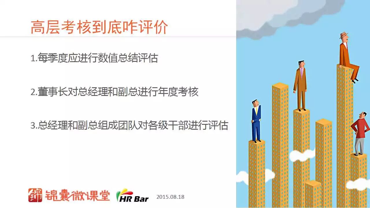一般我们建议第一季度要做数值,每个季度一定要做总结。像很多上市公司年报一样,公司一定要完成季报。在做季报的时候大家一定要认真的去总结评估,月度的东西主要针对于基层的主管和员工。