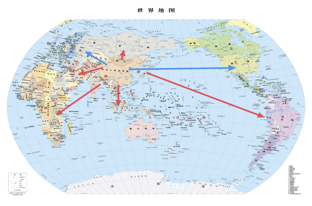 截至2023年,中国对亚洲投入最多,占总投资79.9%,且较去年增长13.9%,为中国主要投资区域。中国对欧洲投资占比为5.6%,仍为重要投资地区,较去年下降3.6%;对非洲投资占比2.2%,较去年增加118.6%,中国对非洲投资规模小,但增长迅速;对北美洲投资占比4.4%,较去年增加7%,其中,对美国投资69.1亿美元,下降5.2%,对欧美投资下降,但仍占比较重。