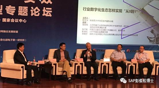 在第二天上午由埃森哲公司主持的“企业数字化转型论坛”上,SAP中国区首席数字官彭俊松博士受埃森哲公司的邀请,参加了嘉宾圆桌会议环节,与其他几位嘉宾一同就“行业数字化生态如何实现‘‘从0到1’’”这一话题进行了研讨。下面是彭博士谈到的一些观点,供大家参考。