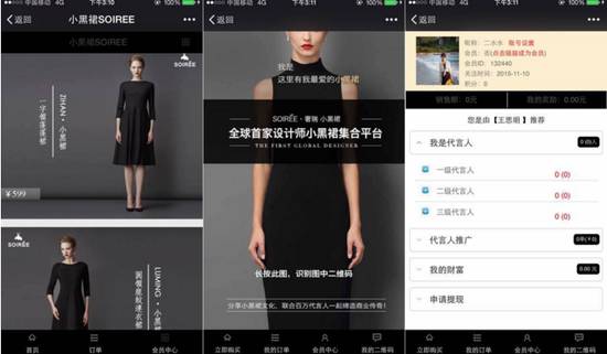 每个购买小黑裙的消费者,都有一个专属的二维码,如果你在朋友圈或其它平台上分享,只要有人通过你的二维码来购买小黑裙,就会有30%的返现。而且二度人脉、三度人脉都可以还来收益。