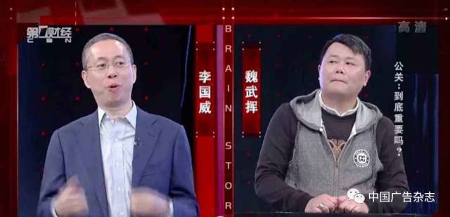 这是2016年5月我和魏武挥老师在第一财经《头脑风暴》那次电视辩论,在今天的公关专业人士看来可能显得幼稚,中国人民大学新闻学院执行院长胡百精教授笑称“两小儿辩日”。