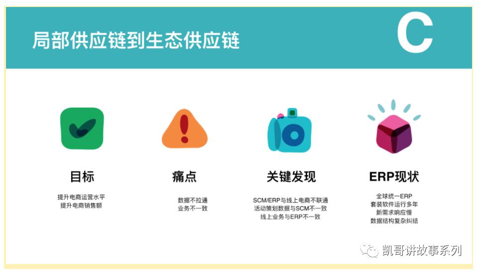 10年前,通过SOA架构集成了以ERP为核心的企业内部管理系统,打通了内部人、财、物,从订单到生产的内部数据孤岛,在如今的互联网时代,局部供应链在大的数字生态中又成了新的数据孤岛。典型的场景就是当线上要做活动的时候,线下的供应链无法满足库存等需求。