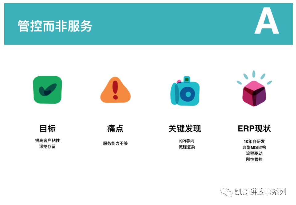 这是一个大型的汽车经销集团,经过二十年的发展,它已经成长成为在全国拥有几百家高端车品牌的4s店集团。我们在访谈的过程中,发现他们的客户满意度非常差,存在等待时间长、信息不一致等问题。在我们深入研究其原因时,发现很多一线服务人员花了很多时间来填写集团要求的数据、流程,他们录入的ERP数据是严格的考核指标。而众多的业务人员对ERP系统却有着诸多抱怨,比如响应不及时、业务复杂、不能够满足销售及客服人员服务用户的需求等。其中最普遍的反馈,是ERP系统不仅不能够提供相应的方便快捷服务工具,比如客户信息查询、二手车车源查询、增项查询匹配等,以真正提升他们的工作效率、优化客户服务的流程,还制定了一堆KPI来让他们必须在指定的时间、场景下,录入指定的信息,如果不录入就会有惩罚。他们每天在各条线、各业务部门设置的ERP指标中疲于奔命,花了大部分时间去满足ERP系统的录入要求,而无法专注的思考如何为客户提供更好的服务。