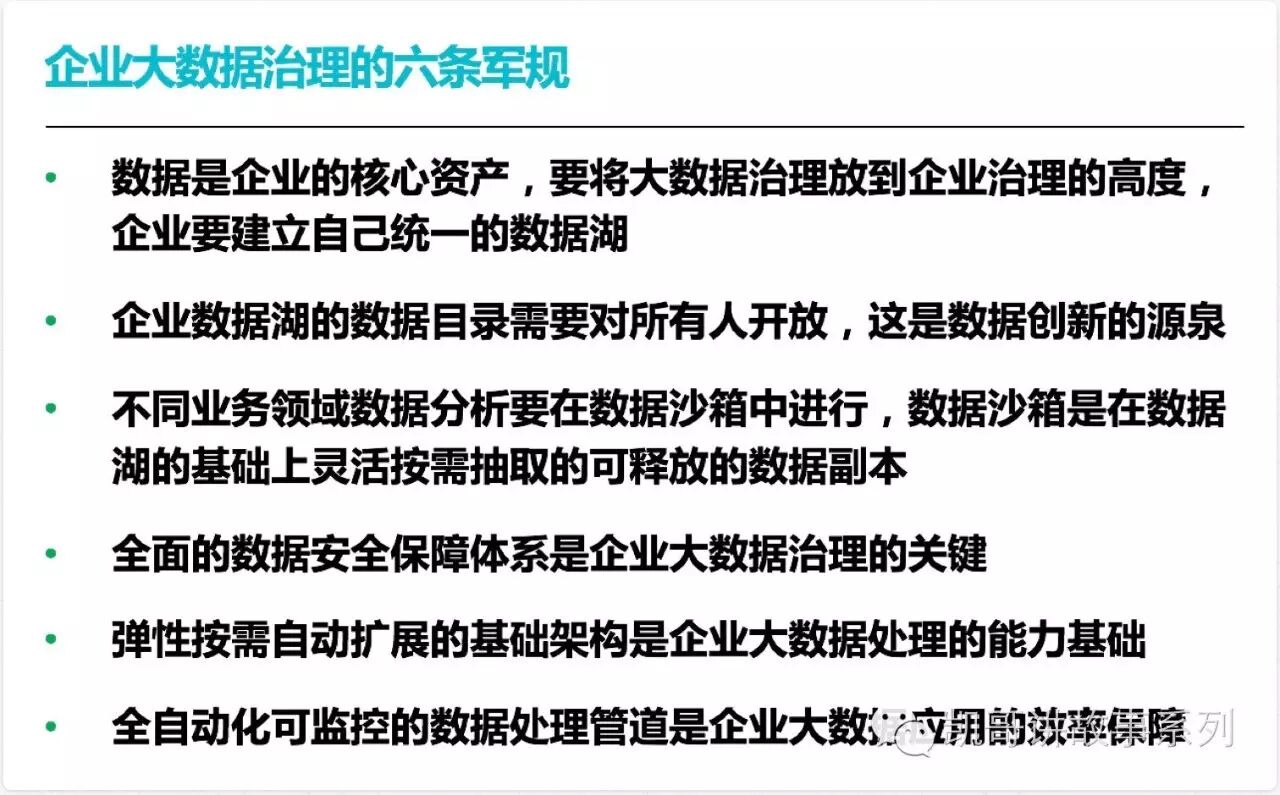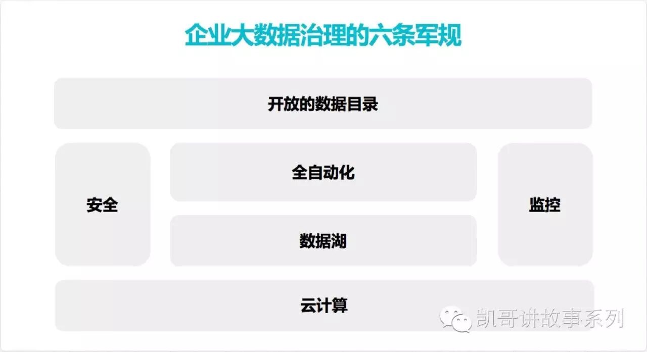 这里凯哥基于过去的经验以及近期的思考,总结以下的企业大数据治理的六条军规,供大家参考。