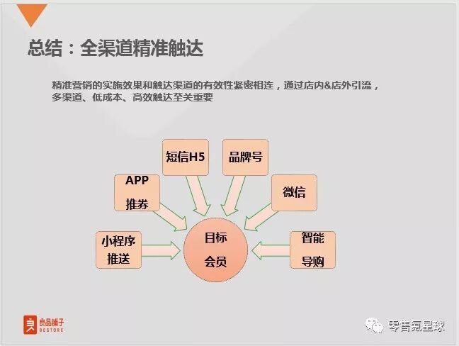 针对会员精准营销的好处。“良品铺子”做了多轮试点之后,发现从大量的大众化营销转成精准营销,确实为“良品铺子”带来确确实实的好处,顾客的同比客单价的成长,以及销售贡献的提升,以及精准营销跟非精准营销到店率的提升,这个其实我们都看到我们在整个精准人群当中的经营,能够为我们带来巨大的增量。