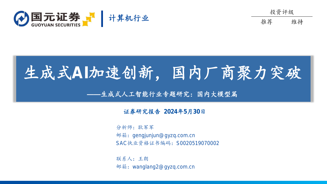 该报告深入探讨了生成式人工智能技术在国内的发展现状与未来趋势,特别聚焦于大模型的应用场景及其对各行各业的影响。首先,从技术层面分析了当前国内生成式AI领域所取得的重大突破,包括但不限于自然语言处理、图像生成等方面的技术进步;接着,详细介绍了几家代表性企业在这一领域的布局情况,如阿里云等头部企业如何通过自主研发的大规模预训练模型来推动行业向前发展,并列举了一些成功案例加以说明。此外,还评估了这些技术创新对于提高生产效率、促进产业升级以及增强国家竞争力等方面的作用。最后,基于当前形势对未来几年内生成式AI在中国市场的应用前景进行了预测,并提出了相关政策建议以支持该行业的健康发展。整个研究旨在为政府决策者、行业从业者及投资者提供有价值的参考信息。