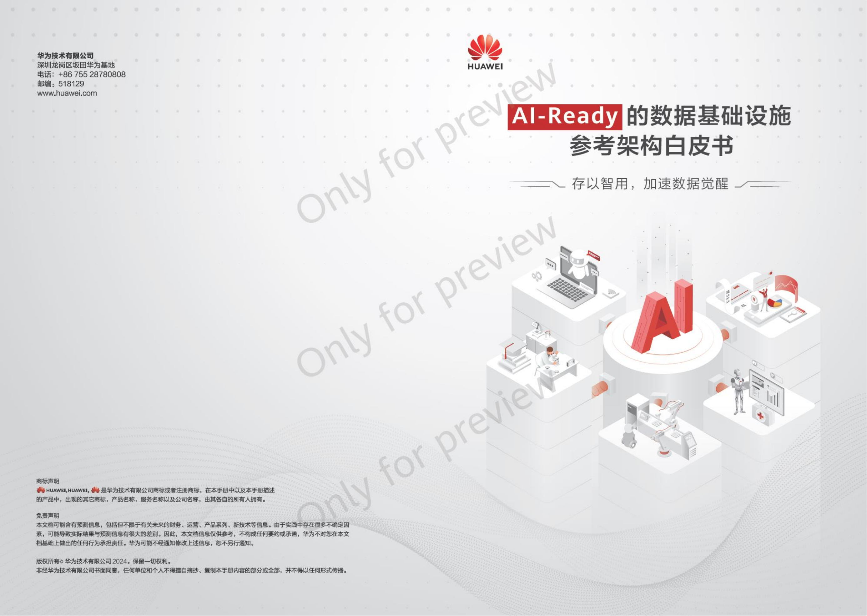 这份白皮书深入探讨了如何构建面向2024年的AI就绪数据基础设施,为组织提供了一套全面的参考架构。它首先分析了当前AI技术的发展趋势及其对数据处理能力的需求变化,指出随着AI应用日益广泛,企业需要更加高效、灵活且安全的数据存储与管理方案来支撑其业务创新。接着,该文档详细介绍了包括计算资源池化、智能存储系统、网络优化策略等在内的关键技术组件,并通过案例研究展示了这些技术如何协同工作以实现高性能的数据处理和分析。 此外,白皮书还特别强调了数据治理的重要性,提出了一系列最佳实践建议,帮助企业建立完善的数据管理体系,确保数据质量的同时保护隐私安全。最后,对于希望利用AI驱动数字化转型的企业而言,本指南不仅提供了理论指导,也给出了实际操作层面的具体步骤,旨在帮助读者理解并实施符合自身需求的AI就绪型数据基础设施解决方案。通过遵循这份报告中的建议,组织可以更好地准备迎接未来挑战,加速其在人工智能领域的探索与发展。