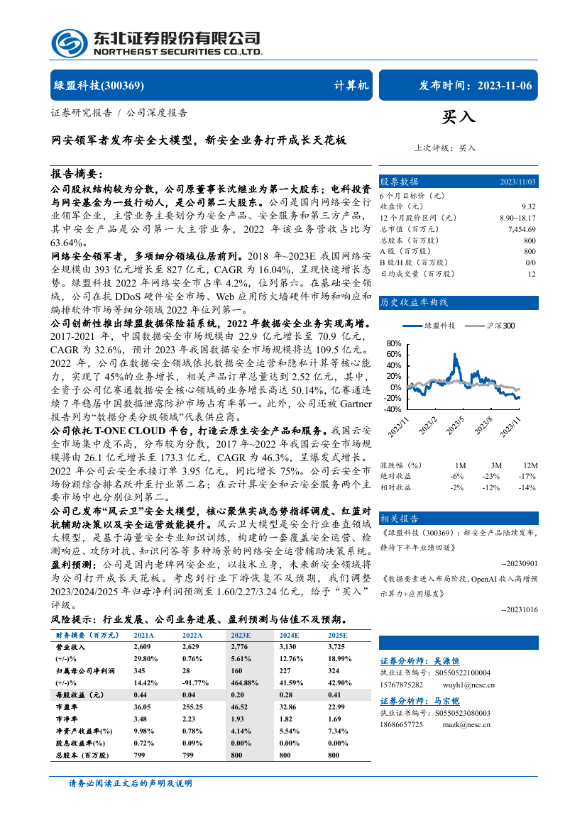 该报告深入分析了一家在网络安全领域具有领军地位的公司,重点介绍了其最新发布的安全大模型以及这一创新如何为公司开辟新的业务增长点。报告首先回顾了公司在过去几年中取得的成绩,包括但不限于技术突破、市场份额的增长、客户基础的扩展等方面,以此为基础阐述了公司作为行业领头羊的地位。接着,报告详细探讨了新发布的大模型背后的技术原理、应用场景及其相较于传统解决方案的优势所在。特别强调的是,通过引入人工智能等先进技术,该模型能够更有效地识别和应对日益复杂的网络威胁,为企业提供更加全面的安全防护。 此外,报告还分析了随着数字化转型加速推进背景下,企业对于高级别网络安全服务需求日益增加的趋势,并指出这将是推动公司未来业绩增长的重要动力之一。同时,也对可能面临的挑战进行了评估,比如技术迭代速度加快带来的持续研发投入压力、国际竞争加剧等。最后,基于以上分析,报告对公司未来发展做出了乐观预测,并建议投资者关注其长期价值。 这份研究不仅提供了关于这家网络安全公司的全面视角,也为了解整个行业的现状和发展方向提供了宝贵的信息。