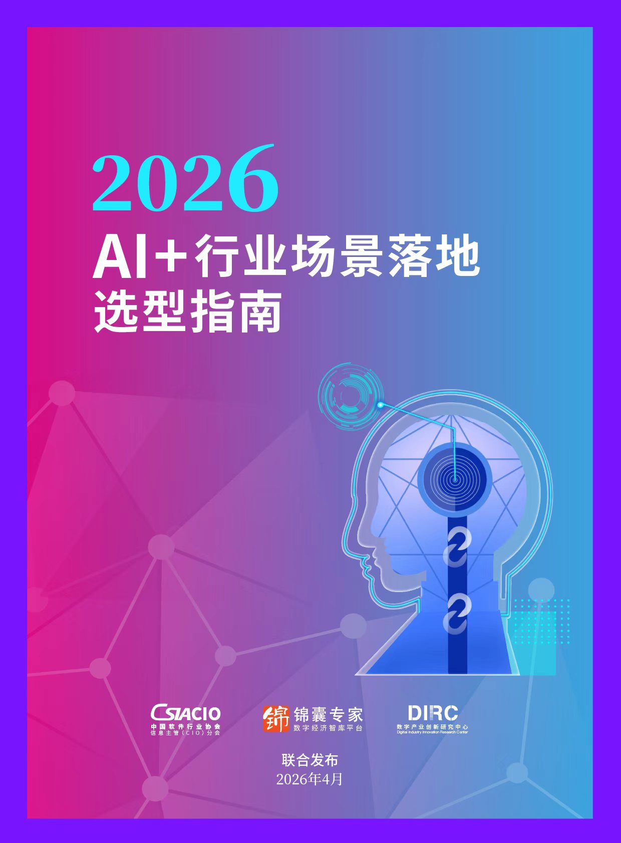 《 AI+行业场景落地选型指南(2026)》由中国软件行业协会信息主管(CIO)分会、数字产业创新研究中心、锦囊专家联合发布。本指南旨在精准破解当前AI产业供需双侧的核心痛点:需求侧企业面临“场景识别模糊、厂商匹配困难、ROI难量化、技术与业务脱节”等系统性挑战;而供给侧厂商则陷入“需求碎片化、获客成本高、价值传递不清”的困境。